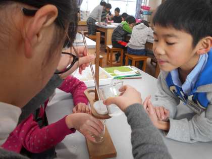 今日は,ろ過の方法を学習しました。いろいろな実験器具があるので,使い方と名前を覚えてくださね!ろ過したあとの液体が透き通っていて,驚いていました。
