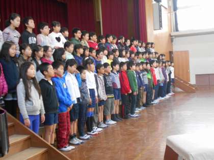 本番は観に来られない教頭先生を招待してのリハーサルです。たくさんほめていただきました。うれしかったね!アドバイスをもらったところをあと2日で修正していきましょう!