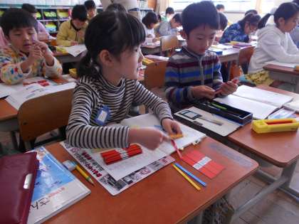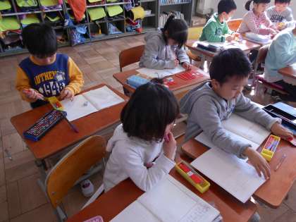 数え棒を使って,大きな数の計算をしました。みんなしっかり計算ができたかな。