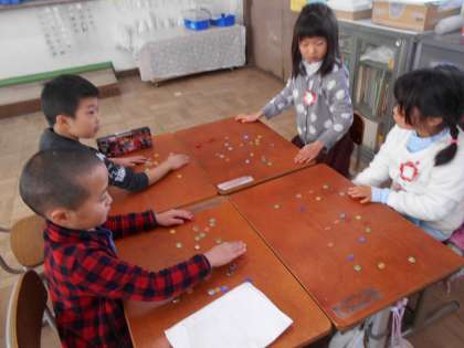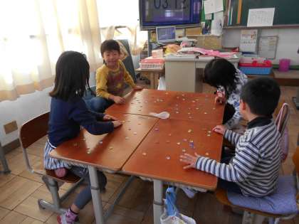おはじきやあやとり,けん玉などを楽しみました。これからけん玉,お手玉,こま,あやとりを練習して,教えていただいた地域の方に披露をします。