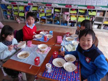 今日の献立は「豆乳なべ」でした。寒い日に,あたたかいお鍋の献立は,心もあたたまりますね。