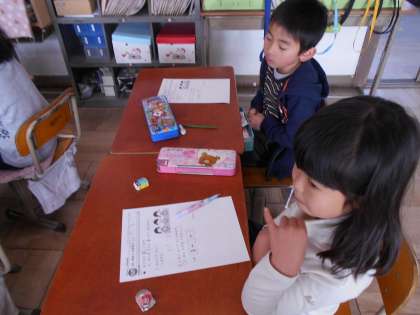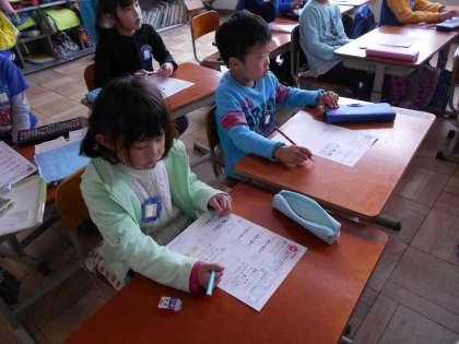 プリントを使って,復習をしました。しっかり問題を解くことができたかな。