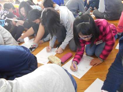 自分たちの住む川岡のことをどれくらい知っているか交流しました。意外と知らないことがたくさんありました。地域の方に聞いてみたいことがたくさんでてきましたね。お地蔵さんや神社やお寺がたくさんあるのは知っていたけど,なぜあるのか,なんのためにあるのかなど詳しいことは知らない人が多いですね。