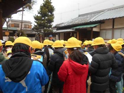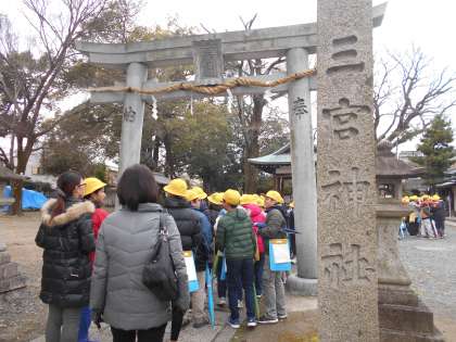 待ちに待った川岡校区のフィールドワークの日です!地域の方に案内をしていただいて,まずは三宮神社に行きました!よく聞くところですが,詳しい話は聞いたことがないので楽しみですね!