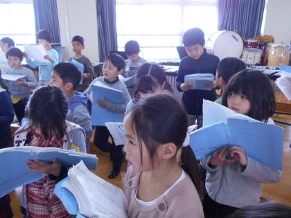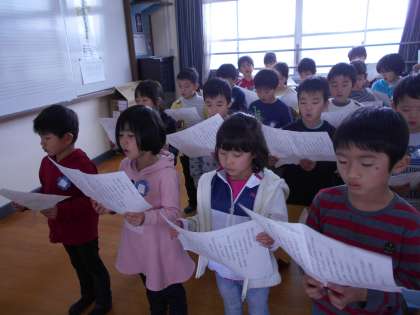 2月21日 1年 音楽「6年生をおくる会の練習」