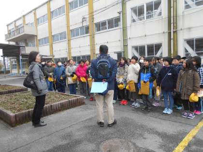 2日間一緒にフィールドワークをしてくださった地域の方にお礼を伝えました。本当にありがとうございました。昨日と今日で学んだことをしっかりとまとめて,発表に向けてがんばろうね!