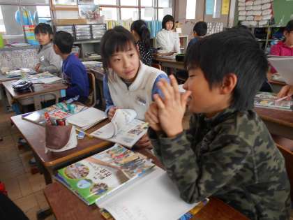 世界自然遺産に登録されている白神山地を守っていくために,取り組んでいることを考えました。二人組で意見が割れるとさらにおもしろくなりますね!