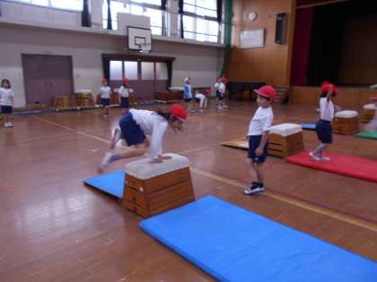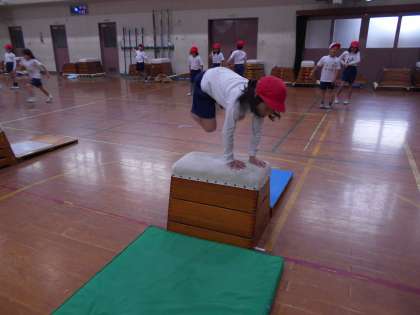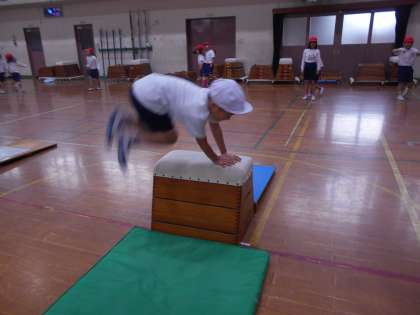 こちらのクラスも,がんばっています。両手をしっかりついて,両足でしっかり着地をすることができましたね。