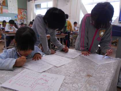 「チャレンジ」の時間は,これまでに習ったことの復習プリントを,自分のペースでといています。まるつけも自分でしています。