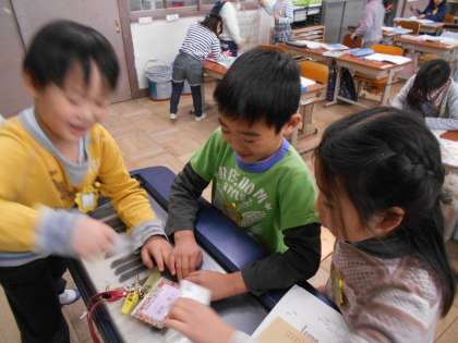 今日は「大きさくらべ」をしました。教科書とふでばこは,どちらが大きいかな?図書カードと下敷きでは,どちらが大きいかな?色々くらべて,楽しかったね。
