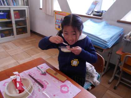 3月3日 1年 「給食のようす」