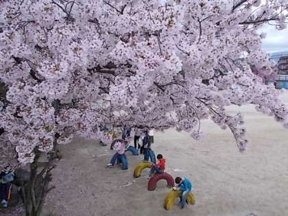 まだ見頃の続く,川岡の森のさくらを観察しました。