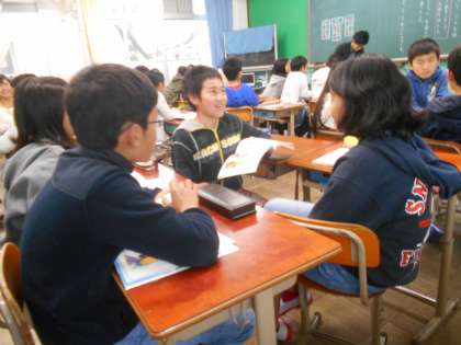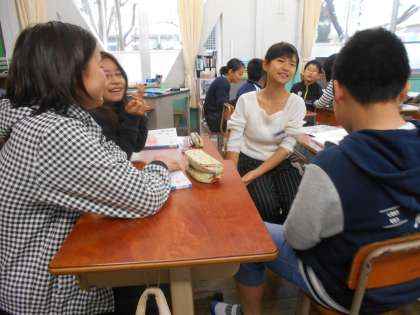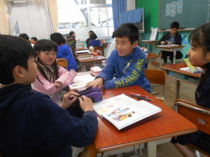 ひとり一文ずつお話を考え,グループでひとつのお話を作りました。思いもよらないお話ができあがり,盛り上がりました。