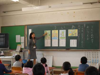 初めての参観日でした。お家の人が気になりつつも,元気に「うたにあわせてあいうえお」が言えていました。