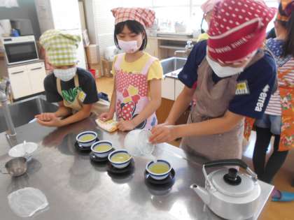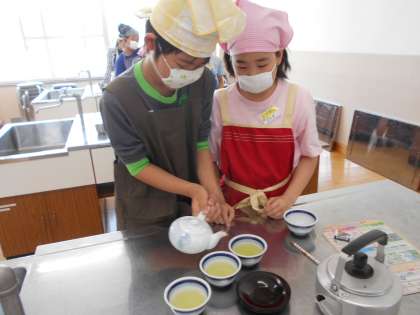 自分のできることを増やすために家庭科の学習でお茶の入れ方を学びました。グループでおいしくお茶をいただきました。
