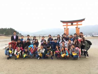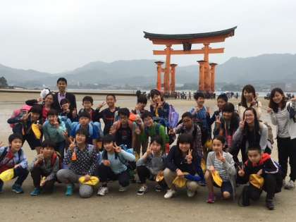 厳島神社では,干潮だったので鳥居の近くまで行って集合写真が撮れました。