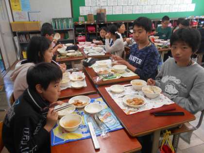 今日は,なごみの日でした。牛乳がなくても汁物のおかずと上手に食べ合わせながら,おいしくいただきました。やはり和食はほっとしますね。