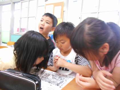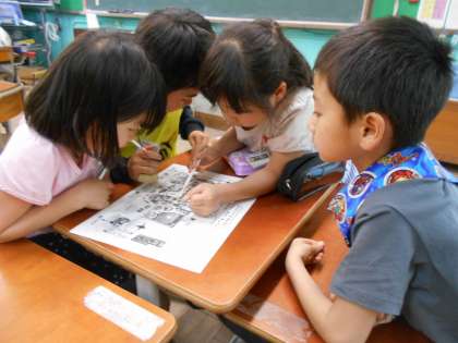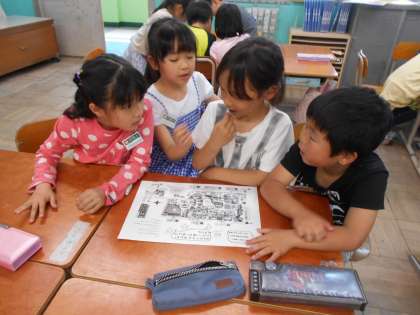 明日の校外学習に向けて,動物園の地図を見ながらどう回るか計画をたてました。グループで協力して,仲良く活動できるといいね。