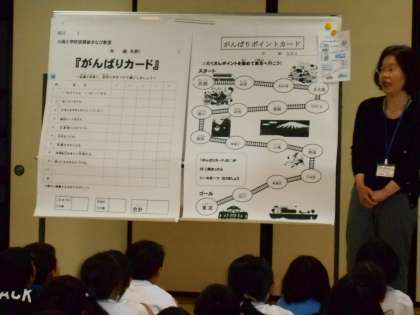 中間休みに和室で「放課後まなび教室開講式」がありました。2〜6年生を募集して,80名の参加で今日からスタートしました。校長先生の「まなび教室は自分で学習をするところです。」というお話の後,まなび教室の先生から,今年度新しく取り組む「がんばりカード」の説明を受けたり,まなび教室の「13のやくそく」をみんなで確認したりしました。まなび教室の先生,よろしくお願いします。