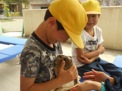 動物園についたら,うさぎをさわったり,テンジクネズミを抱っこしたりしました。テンジクネズミの名前は「やきおにぎりちゃん」だそうですよ。おいしそうな名前ですが,テンジクネズミは食べられません。やさしく抱っこして,なでてあげてね。ちなみに,テンジクネズミはモルモットのことです。
