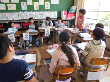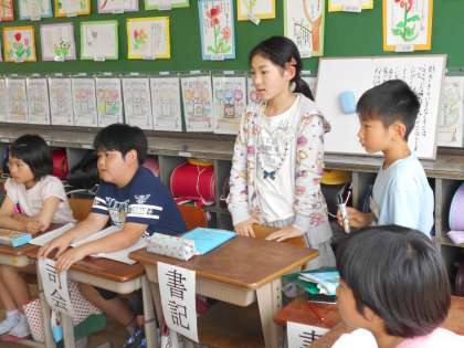 国語「よりよい話し合いをしよう」の学習で話し合いをしました。司会グループは事前に議題や進め方について相談して話し合いにのぞみました。書記の人も出た意見を整理しながらホワイトボードに書いていきました。
