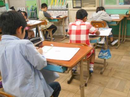 今年度始まって,第1回目のテストでした。しっかりこの日にむけて自主学習を進めてきたようなので,気合いはばっちりです。