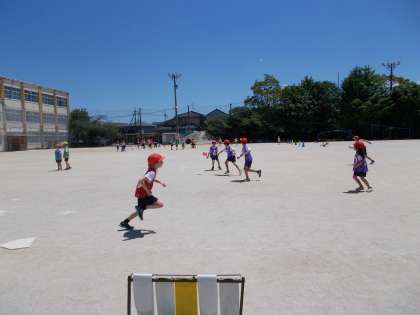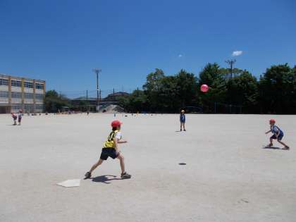 初めは,なかなか遠くに打てなかったボールも,打てるようになりました。チームの応援の声も力になります!