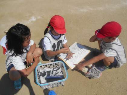 今日から,ねらい2の「走るじゅんばんやバトンパスのしかたをくふうして,あい手チームと競争することを楽しむ。」の学習が始まりました。1試合目が終わると,作戦カードを見ながら,勝てるように作戦を考えます。