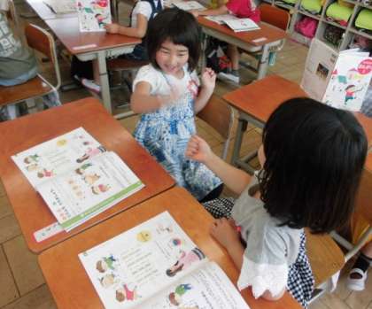 「拍を感じてリズムを打とう」の学習で,「じゃんけんぽん」の歌を歌いました。歌の最後のところで,お友達とじゃんけんを楽しみました。