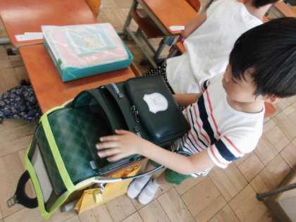 朝,「おはようございます!」と元気よくあいさつをして教室に入ると朝の用意をてきぱきやっています。