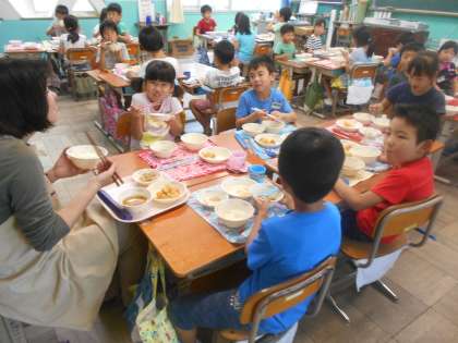 こちらのクラスも、おいしそうな顔で食べています。