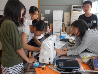 どのクラスも友だちと協力する姿が見られました。まっすぐ縫えているか,糸が外れていないか,みんなでチェックしています。