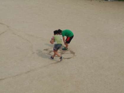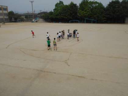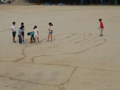 聖武天皇がつくった大仏がどれほど大きいのかを調べるため,実際に運動場にかいてみました。