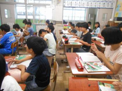 今日は教室や図書室で調べ学習でした。食べたものが体の中でどのようになっていくのかを調べています。