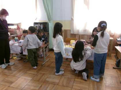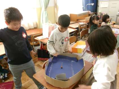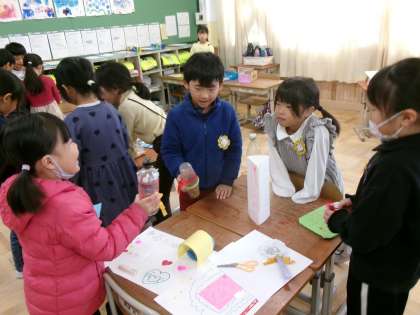 生活科「あきとともだち」の学習で、秋を使ったおもちゃを作りました。今日はそのおもちゃで「すまいるあきまつり」を開きました。どんぐりごまや迷路、楽器やアクセサリーなど、さまざまなお店があり、1年生みんなで楽しんでいました。秋を感じながら、「すまいる」があふれるお祭りになりました。次は2年生を招待します。2年生にも「すまいる」になってもらえるように、準備を進めていきたいです。