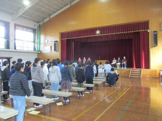 いつもお世話になっている見守り隊の皆さんへ感謝の気持ちをお伝えする会を行いました。会には6年生が学校の代表として出席し、感謝の思いを伝えることができました。改めて安心・安全な川岡の町は皆さんのおかげだということを感じる機会になりました。会では1年生が書いたお手紙と、6年生が作ったシトラスリボンと感謝状が贈られました。6年生から歌の贈物もありました。今後もどうぞよろしくお願いします!