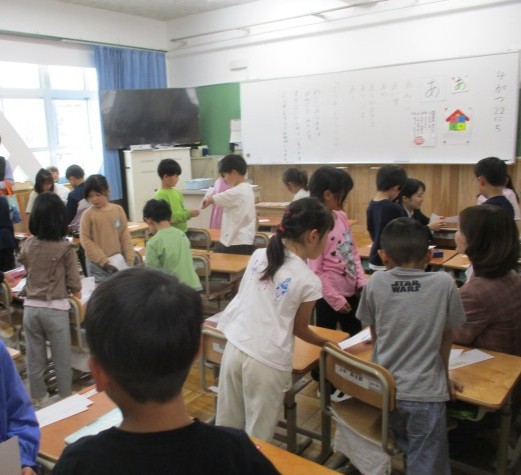 国語科の学習で「どうぞよろしく」という学習をしました。友達と自分のつくった名刺を交換しました。