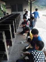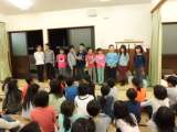 朝の集いで軽く体操。このあとは,朝食,掃除をすませて退所式です。