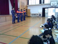 社会科の学習で消防士と消防団の方たちをお招きして、消防士・消防団のお仕事を教えて...