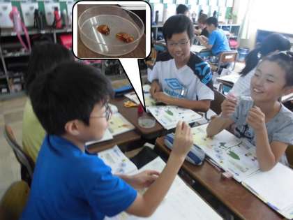 『誰か,肥料をあげたのでは??』疑惑が浮上しましたが,どうやらそれは無かった模様。では養分は一体どこに・・・。考えられるのは,もうインゲンマメの種子の中しかありません。というわけで,ヨウ素液を使って実験をしました。