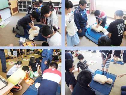 本日,西京消防署,川岡東消防分団の方々にお世話になり,救急救命講習を行いました。命を救うためには,大事なポイントや技術がありますが,みんなしっかり学習しました。普段,なかなかそのような場面に会うことはないと思いますが,命と向き合うとても大切な学習をしました。