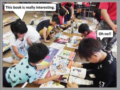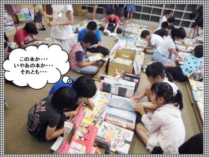 読書週間の取組のひとつ『選書会』も同時に行われています。自分の気に入った本を選んで,選んだ人数が多ければ近い将来,その本が図書室に入ってくることになります。会場である児童会室に入ると新しい本がたくさんありました。