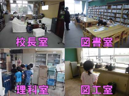今日の学校探険はいつもとちょっと違います。それはなぜかというと2年生がいないのです。きょうは1年生だけで学校探険をしました。自分達で探険したい場所を選びました。少しドキドキしながら,でもちょっぴりワクワクしながら探険場所に向かいました。何があるのか,誰がいるのかなどしっかりと調べることができました。