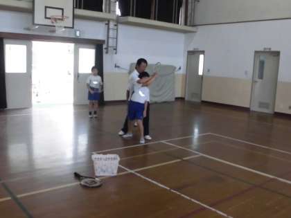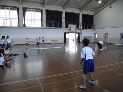 5,6年生の経験者はラリー対決やゲーム形式で練習しました。