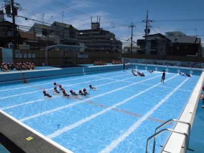 天気,気温,水温,ともに良好。絶好のプール日和となりました。