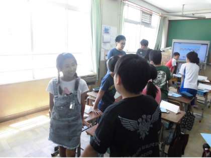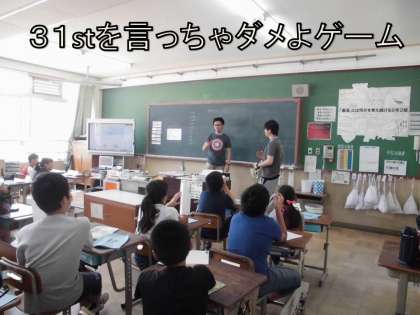 さらにそれを使ってゲームをしました。『1st(first)』から順番に言っていき『31st(thirty-first)』を言ってしまうとアウト,というゲームです。6年生は頭を使って,脳をフル回転させて考えていました。