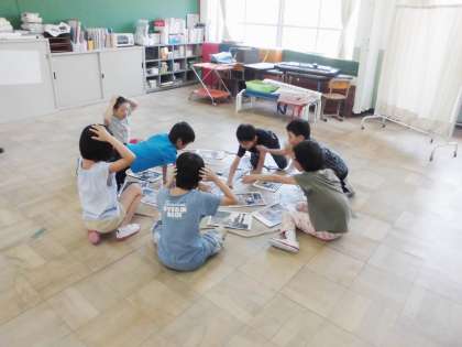 国語の学習で作ったかるたが完成し,みんなでかるた取りをしました。お正月ではないですが,季節はずれの『かるたとり大会』の幕開けです。