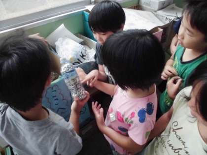 『気になる記号』の学習で見の周りの記号を集めました。教室だけではなく,学校中をくまなく探します。すると職員室の前でAEDの記号やペットボトルにも記号をたくさん見つけることができました。いろんな記号があるのですね。