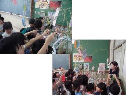 『織姫さまと彦星さまは今日会えるのかな?』2人の心配をしていた1年生がかわいらしかったです。