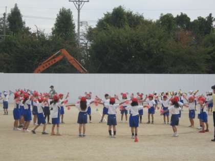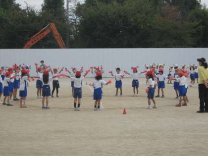 玉入れの前に行うダンスの練習の様子です。明日は,本番。どんなダンスを見せてくれるのでしょうか?